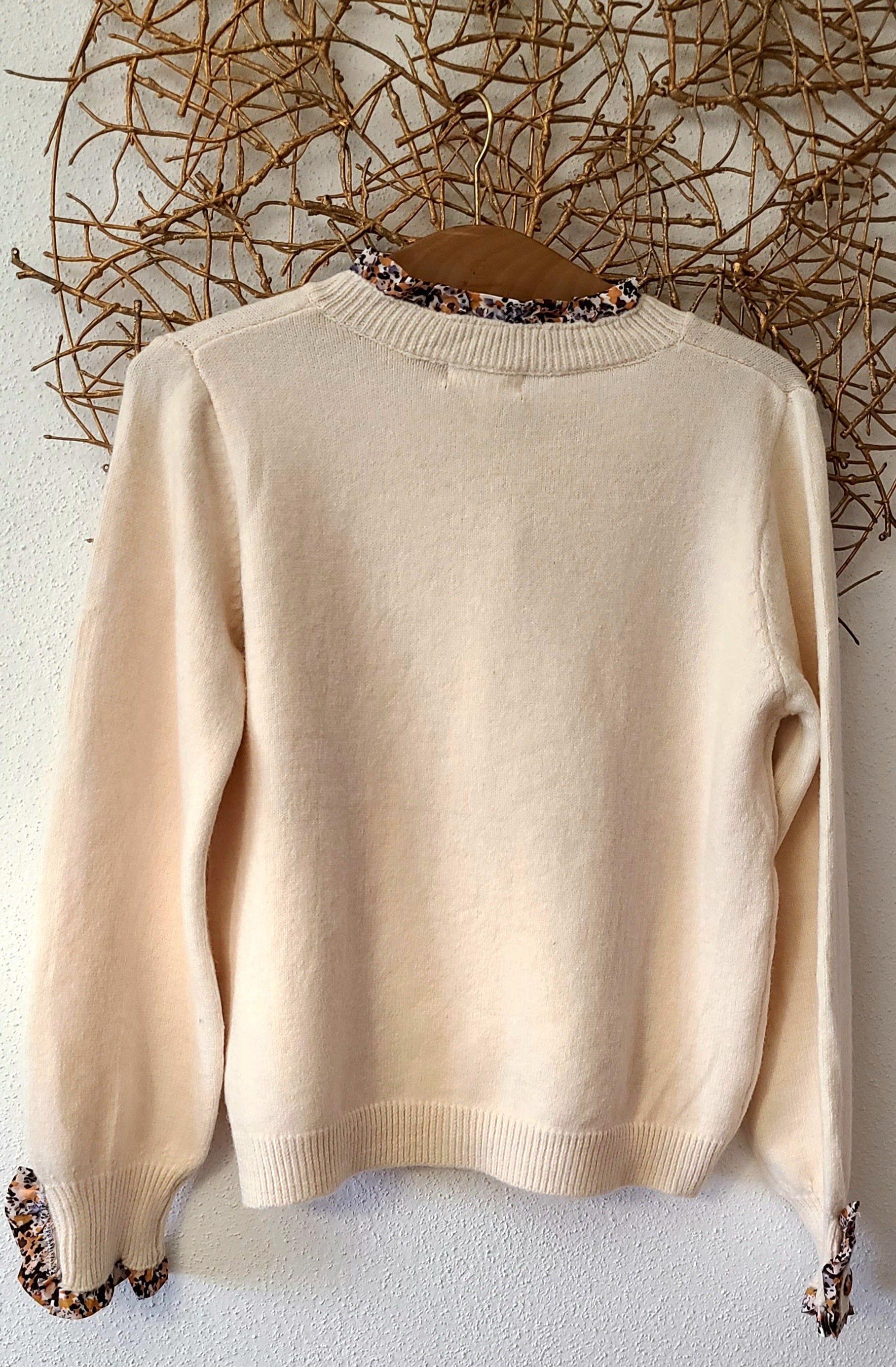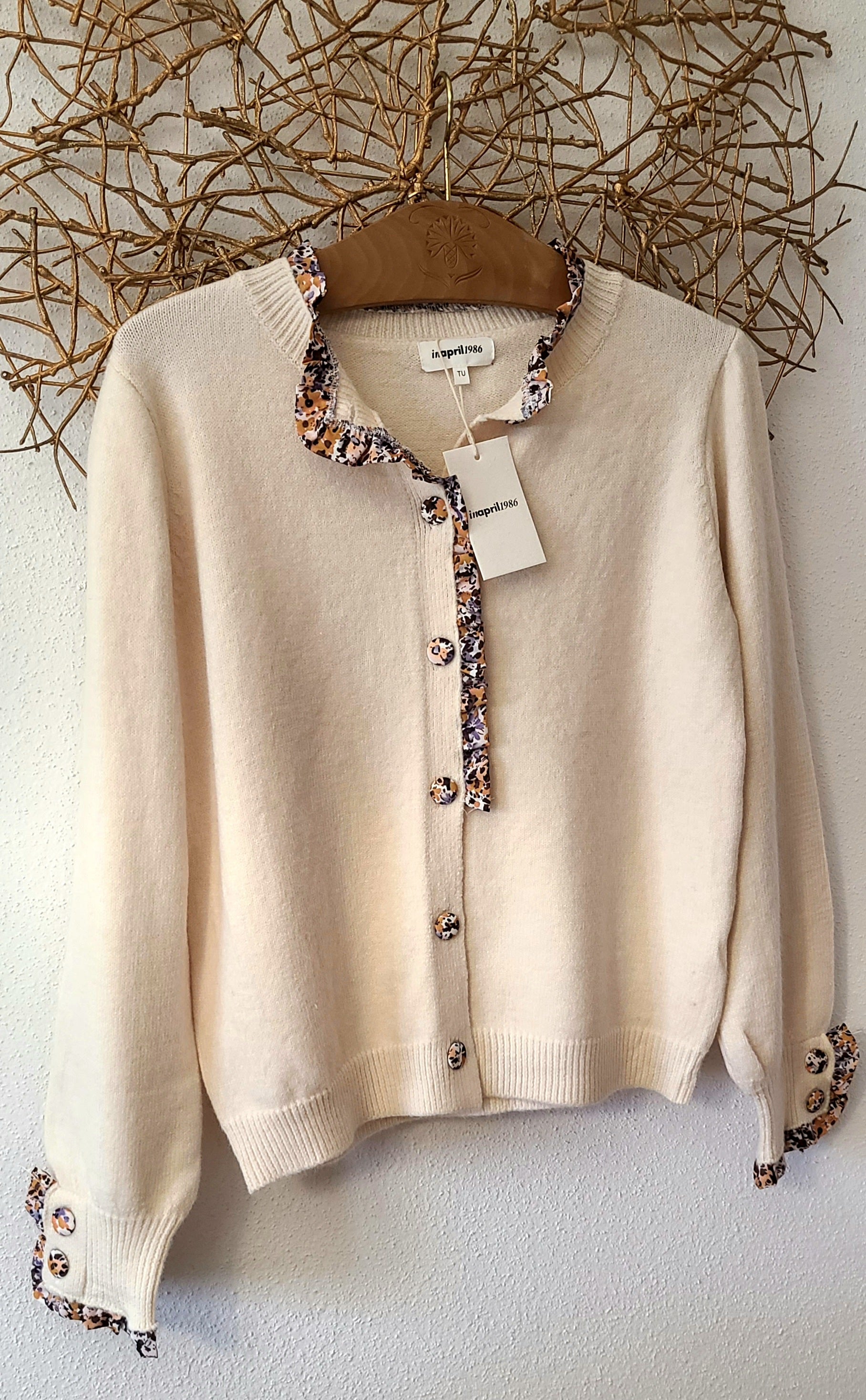 Un indispensable revisité avec charme. Ce gilet à coupe classique est sublimé par un liseré fleuri délicat au niveau du col, de la patte de boutonnage et des poignets. Design féminin, original et raffiné — parfait pour apporter une touche élégante à vos tenues du quotidien ou accompagner un look plus habillé.